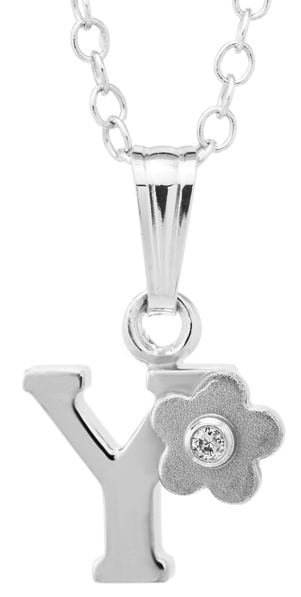 Sterling Silver Child's Initial Pendant On 15" Chain - Y
