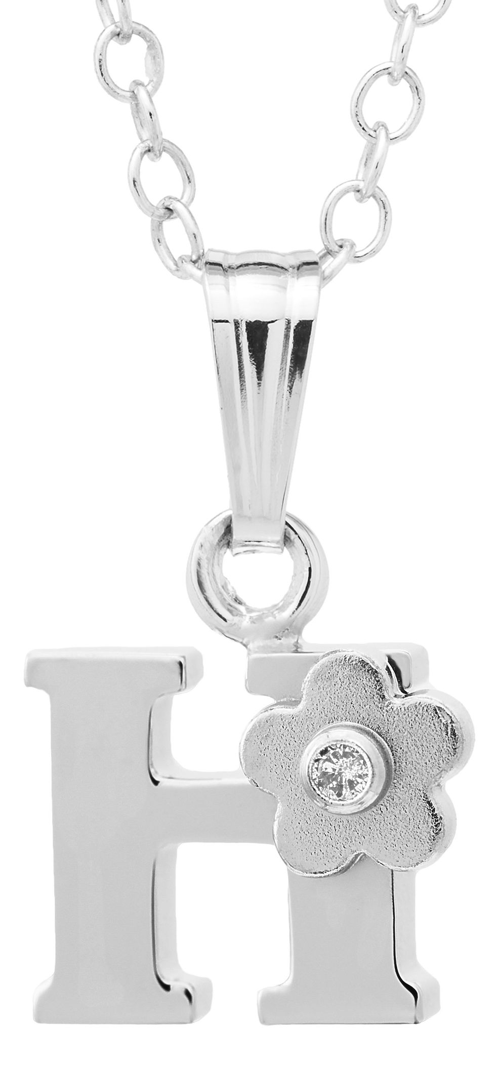 Sterling Silver Child's Initial Pendant On 15" Chain - H