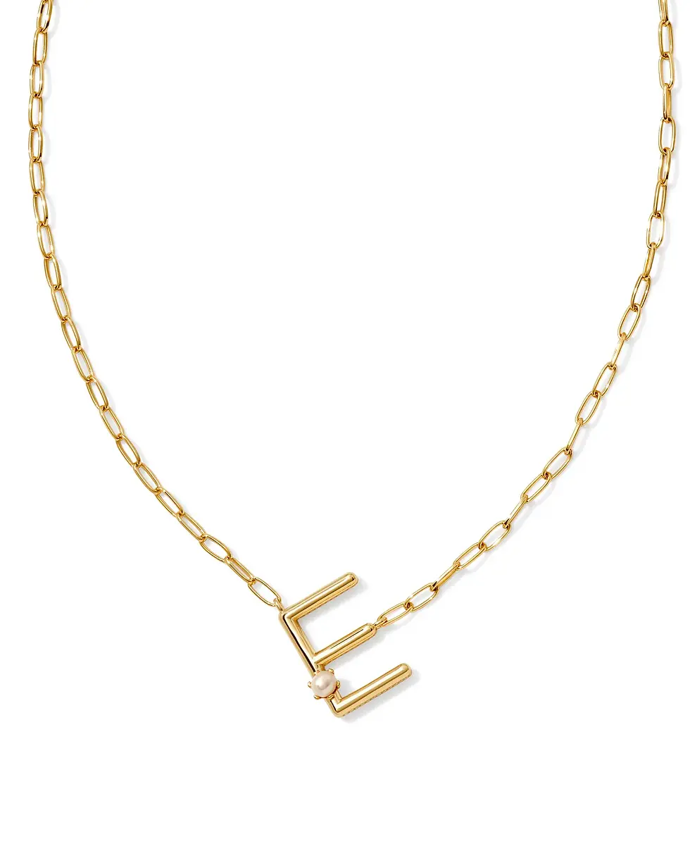 Gold Tone Letter E Necklace With Pearl